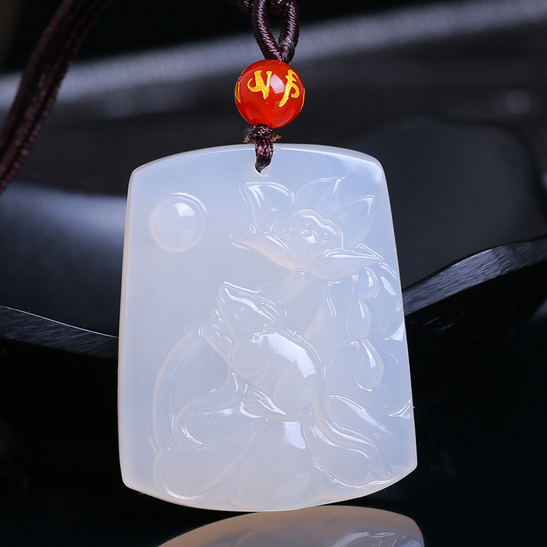 开光生肖属猴莲子送瑞白玉髓吊坠男女款平安项坠