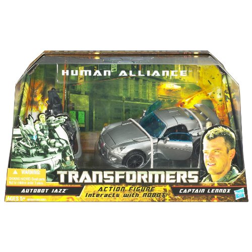-. Binding : Toy -. Brand : Transformers -. EAN : 0653569503682 -. Feature : Recreate exciting movie scenes or create your own / Includes Captain Lennox action figure and Autobot Jazz robot-to-vehicle figure / Features a launching missile accessory and converts to Pontiac Solstice car in vehicle mode / Motorcycle vehicle converts to shielded blaster accessory / Human ally figure rides on motorcycle vehicle or blaster accessory and inside the car in vehicle mode -. IsAdultProduct : 0 -. Label : Hasbro -. Manufacturer : Hasbro -. Model : 19764 -. MPN : C-145B -. PackageQuantity : 1 -. PartNumber : C-145B -. ProductGroup : Toy -. ProductTypeName : TOYS_AND_GAMES -. Publisher : Hasbro -. Studio : Hasbro -. Title : Transformers Human Alliance - Autobot Jazz -. UPC : 653569503682