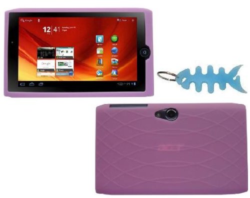 -. Title : HappyZone - (Pink) Silicone Skin Cover + Light Blue Fishbone Style Keychain for Acer Iconia A100 7" Tablet