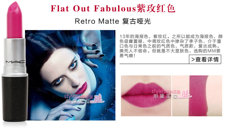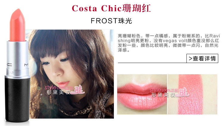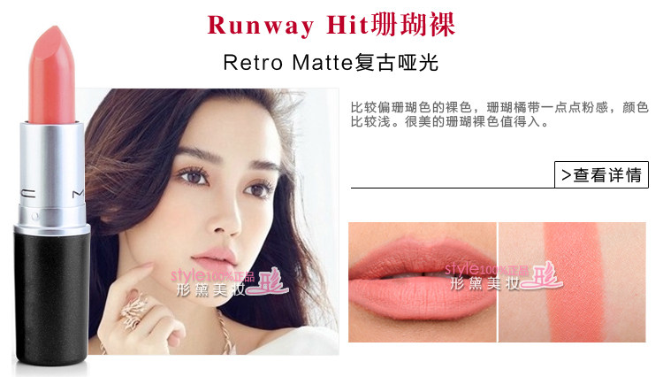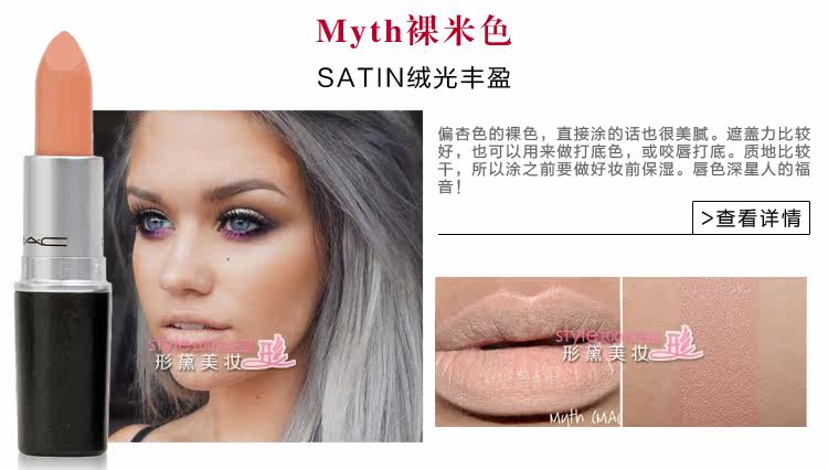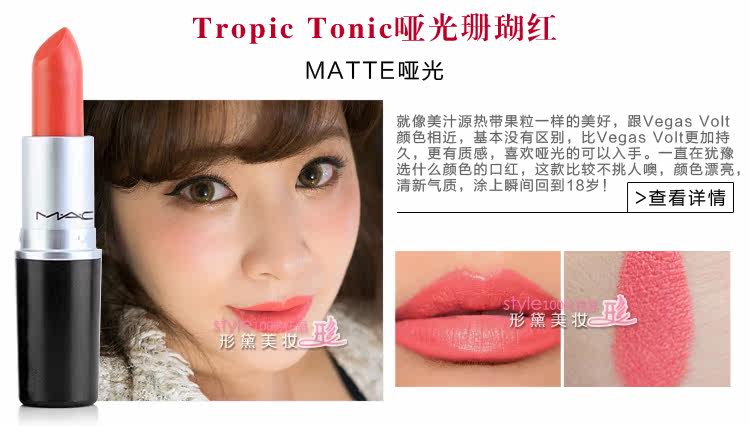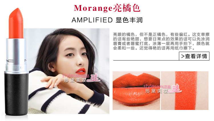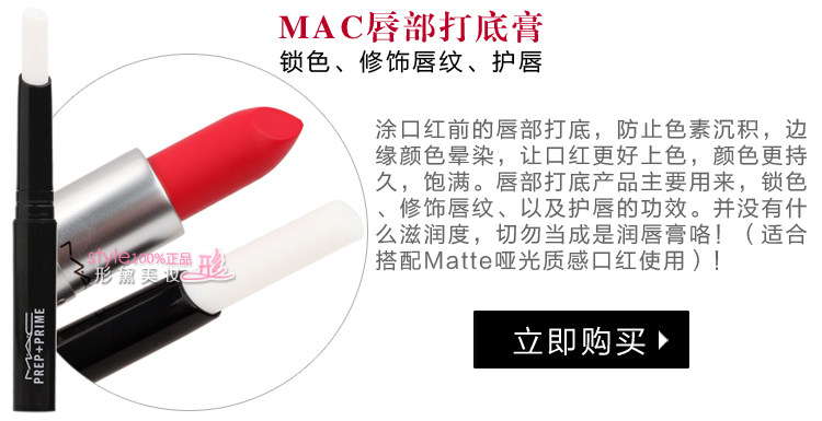 | 使用方法 | MAC唇膏比其他品牌唇膏相对偏干,每款颜色质地都不同,建议先用润唇膏打底,再把唇膏涂嘴唇上,也可与唇彩搭配使用,体验与众不同的唇妆效果。 MAC魅可 Prep+Prime Lip妆前打底唇霜【点击】