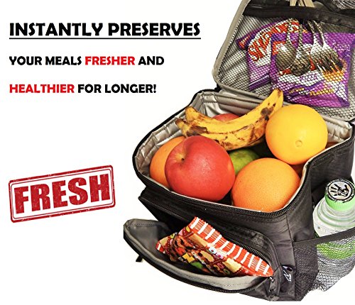 ULTRA LIGHT, LEAK-PROOF and Non-toxic FDA-compliant EVA (Ethylene Vinyl Acetate) lining and PE foam insulation = Leak proof lunch bag that maintains foods at optimal temperatures.