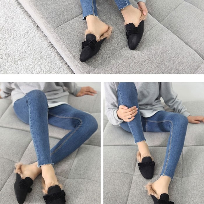 商品名:バブーシュ レディース フェイクファー ペタンコ フラット スエード調 2017 秋冬 ファッション 靴 婦人靴