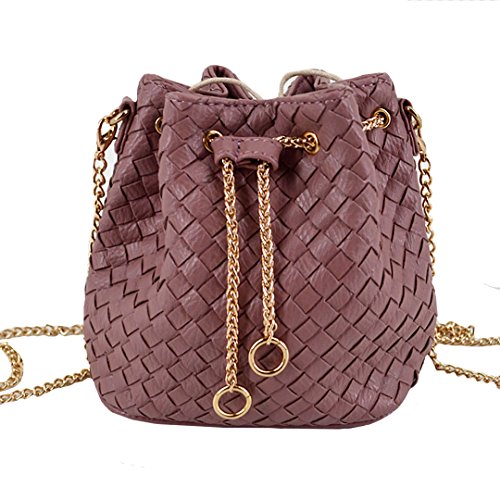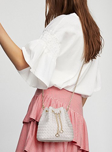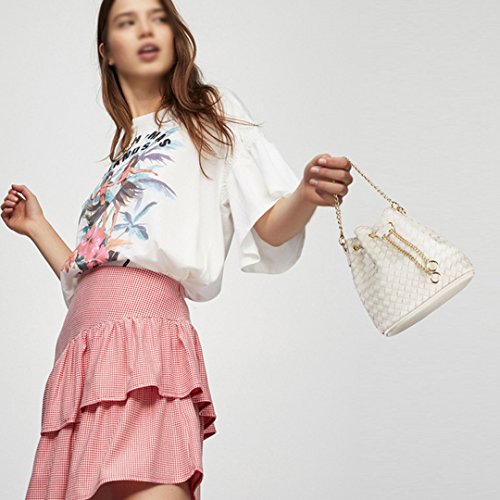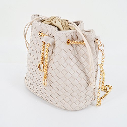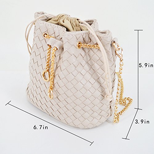 -. Feature : Made of high quality PU leather and polyester lining texture,breathable and fashionable,exquisite workmanship. / Bucket Tote Bag Dimension: 17 x 15 x 10cm / 6.7 x 5.9 x 3.9inch (L x W x H). / It can be used as a bucket style handbag, a shoulder bag, or a cross body messenger bag. This bag comes with a removable and adjustable metal chain shoulder strap you can wear it on your shoulder or just handed it. / The product used hand weaving process, professional design and skillful manufacture.Selected high-end hardware metal chain and shinning hook, exceptional and luxurious. / Using drawstring strap to close and open make this bag more safer and convenient. Useful and practical yet stay elegant for everyday occasions such as casual outdoor activities, shopping, traveling, schooling, working,etc.