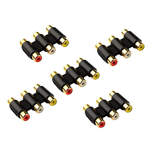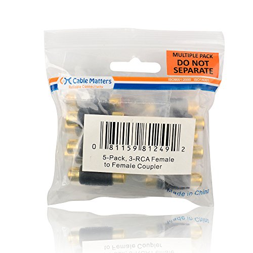 Cable Matters 5-Pack, Gold Plated 3-RCA Coupler