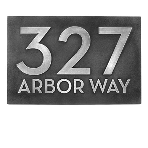 -. Title : Modern Font Horizontal Street Address Plaque 13x8.5 - Pewter Metal Coated Custom Number Sign
