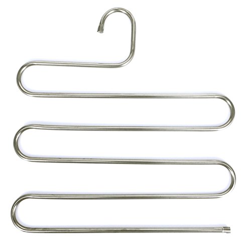 -. Title : Magic Stainless Steel S-type 5 Layers Jeans Pants Tie Trousers Hangers Closet Hangers Space Saver Storage Rack Organizer