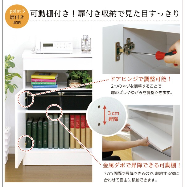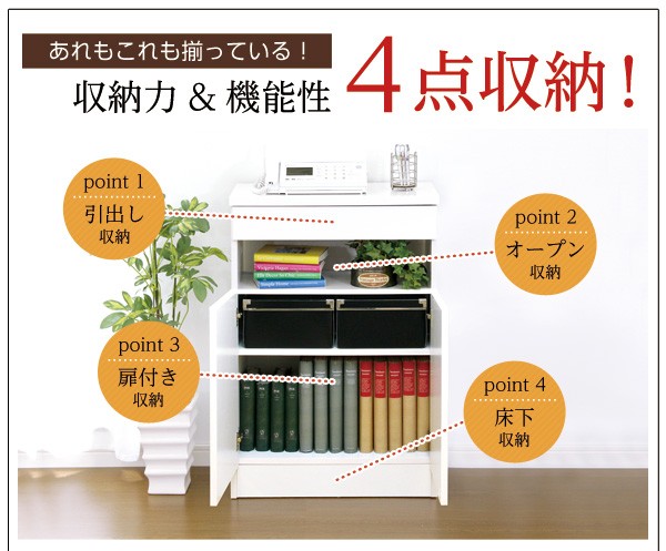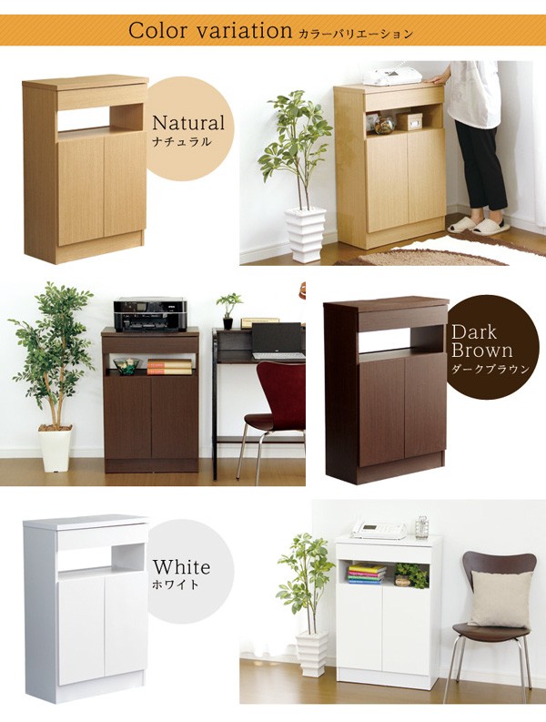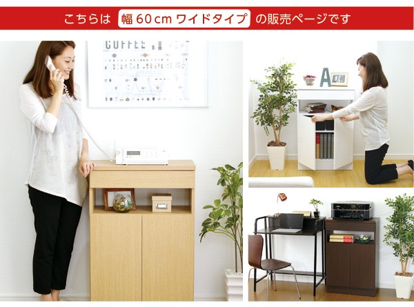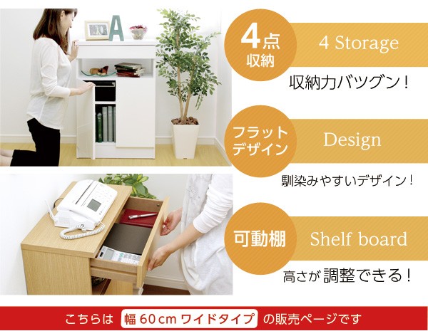 【商品について】充実の収納力!ファックス台【Cassata-カッサータ-】(幅60cmタイプ)■サイズ:外寸:(約)幅60x奥行き29.5x高さ90.5cm※商品重量:(約)16kg■カラー:ホワイト ナチュラル ダークブラウン■素材:材質:パーチクルボード、MDF表面加工:プリント紙化粧合板■その他:・生産国:中国・お客様組立商品です・梱包サイズ:(約)93x33x21.5cm(2.37才)・梱包重量:(約)17kg ※メーカー直送品、商品代引き不可