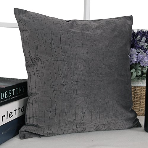 Deconovo Intersecting Line Pattern Velvet Super Soft Pillowcase Cushion With Invisible Zipper For Decoration 18X18 Inch Grey