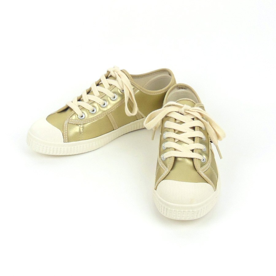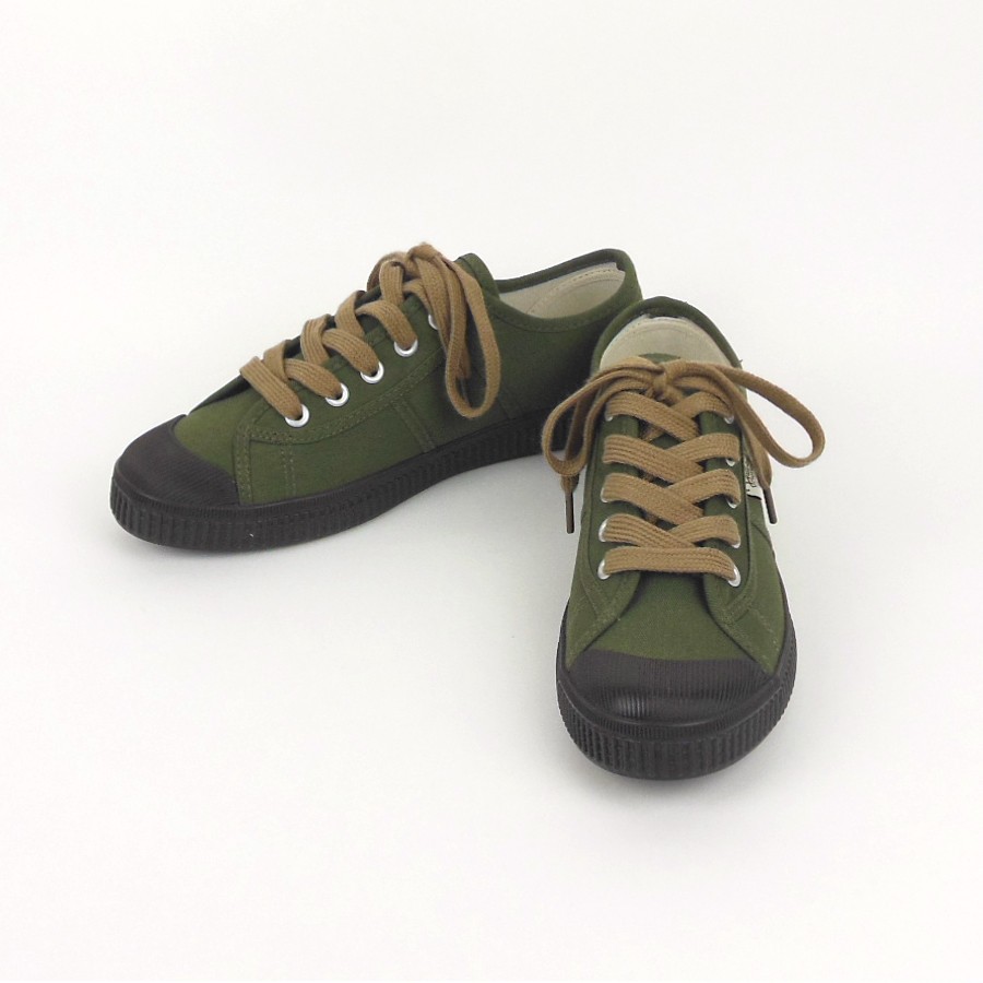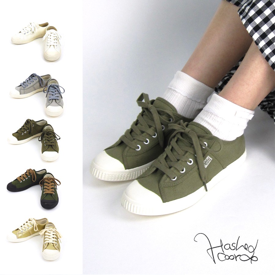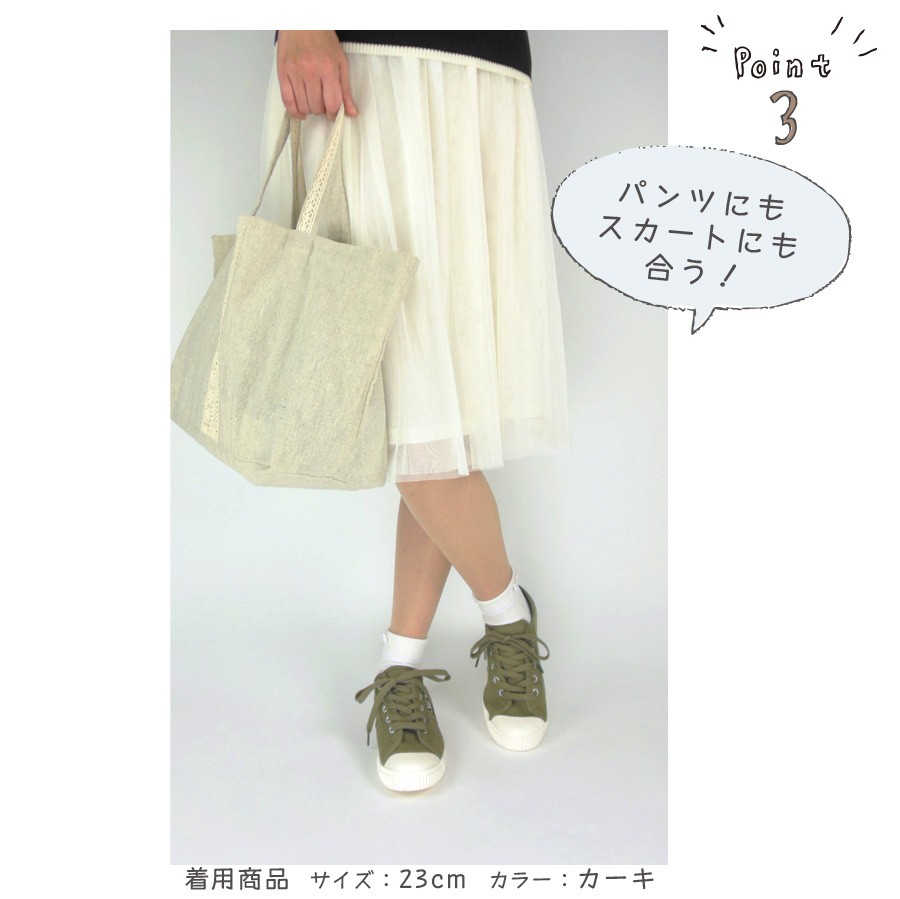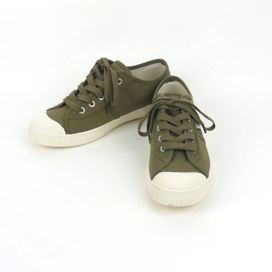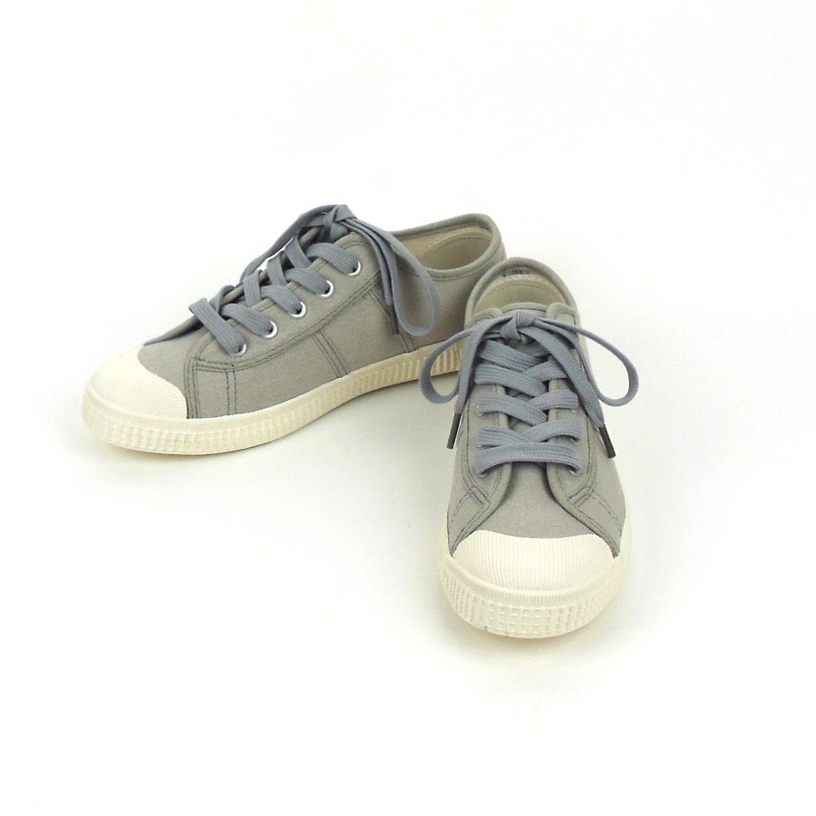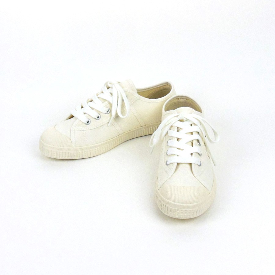 ナチュラルな材質のキャンバス生地を使用。履き口まわりのパイピング、つま先部分の小さなトゥキャップはスニーカーなのにきちんと感を出してくれます。