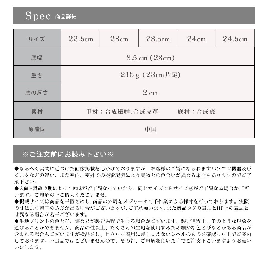 | 素材 | アッパー素材 その他生地 内張素材 生地・合成繊維 中敷素材 生地・合成繊維 |