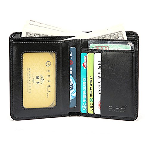 -. Feature : Materials of 100% Genuine Leather + Polyester Lining, Soft and Silky / Structure: 5 Card Slots, 2 Money slot pockets, 1 Photo Slots + Driver license ID Window / A man's wallet should be contemporary, masculine and durable. Crafted with top grained genuine leather, the wallets looks great, offers a slim, lightweight design, and goes great with jeans or a suit / A perfect gift idea for your beloved man for birthday, valentine, Christmas and Anniversary / Product Dimensions: 4 x 3.5 x0.6 inches, fits easily into a front or back pocket