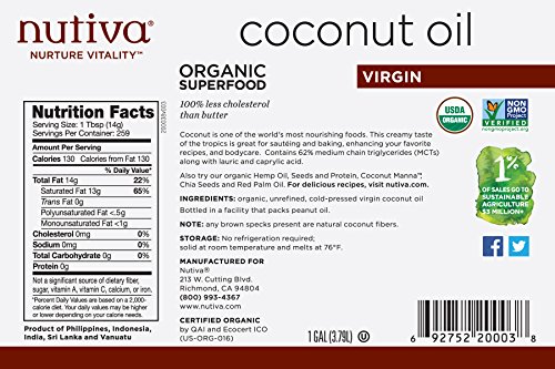 Nutiva Organic Coconut Oil How Virgin Coconut Oil Is Processed Is The Key To Optimizing Its Taste, Texture, Color, And Aroma. Within Two Hours Of Nutiva'S Coconuts Being Chopped, The Virgin Coconut Oil Is Cold-Pressed.: (Note: This Product Description Is Informational Only. Always Check The Actual Product Label In Your Possession For The Most Accurate Ingredient Information Before Use. For Any Health Or Dietary Related Matter Always Consult Your Doctor Before Use.)Feature