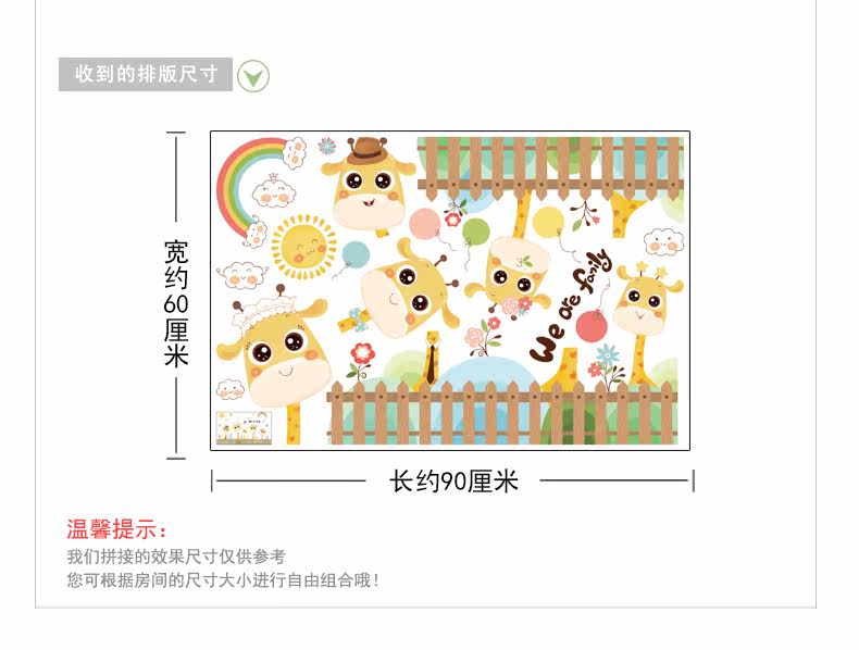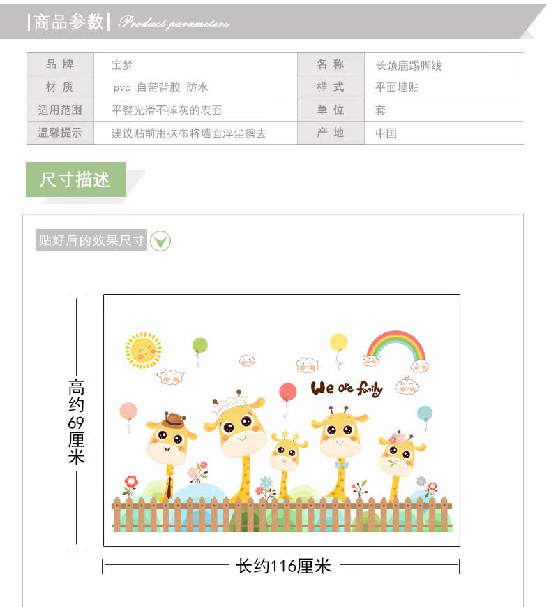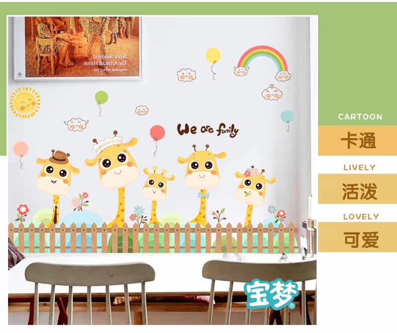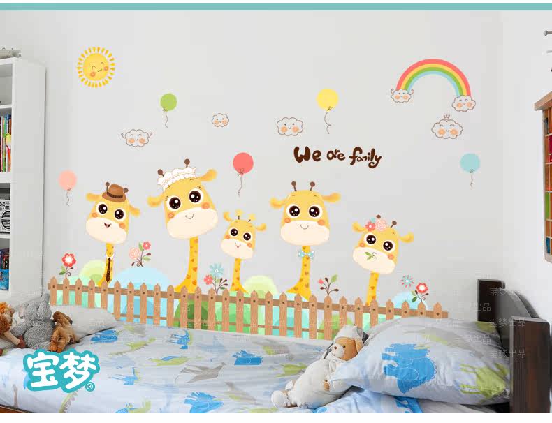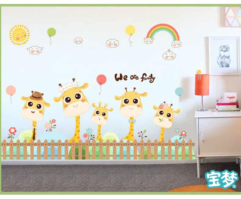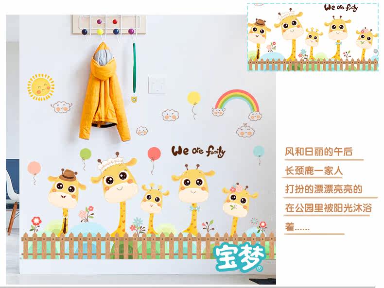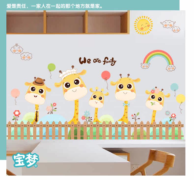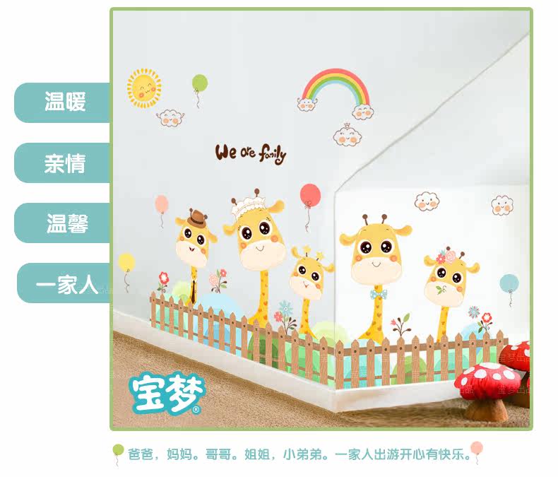 卡通长颈鹿踢脚线儿童房卧室自粘贴画可爱幼儿园墙角装饰品墙贴纸