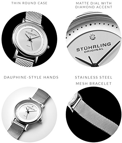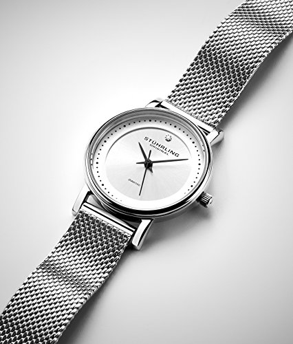 Round watch featuring logoed and numberless sunray dial with diamond at 12 o'clock