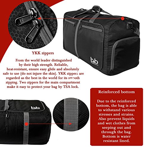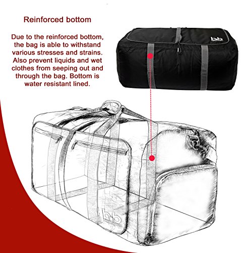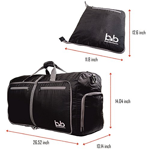 -. Brand : BB Bags&Backpacks -. Department : unisex-adult (lage only) -. Feature : PLENTY OF USES - due to its high capacity, the 27-inch duffle bag will serve you well as a foldable travel bag, carry on lage bag, gym bag for women and men or just as a travel laundry bag / EXTREMELY DURABLE - packable duffle bag is made of lightweight but sturdy fabric; high-quality YKK zippers provide high reliability; handy carrying straps/shoulder pad - every detail is thought out / LOTS OF POCKETS - travel duffel bag is equipped with two outside pockets and small hidden interior pocket - every pocket of the large duffel bag is zippered for safe storage of your stuff / ZIPPERED SHOE COMPARTMENT of large duffle bags will ensure easy access to your shoes and will help to keep your wet gym clothes and other belongings separate - it's roomy, water and odor resistant / CONVENIENT STORAGE - it's a foldable bag that will not take a lot of space when it's empty - whether the suitcase or wardrobe but at the same time is roomy enough to fit all the necessary gear -. PackageQuantity : 1 -. ProductGroup : Apparel -. ProductTypeName : LAGE -. Size : One Size -. Title : Extra Large Duffle Bag with Pockets - Waterproof Duffel Bag for Women and Men