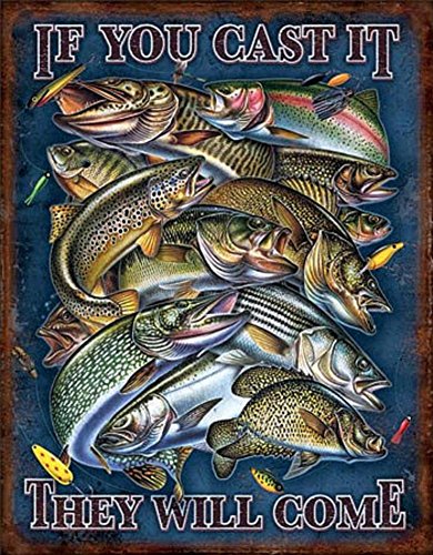 Fishing - If You Cast It They Will Come Distressed Retro Vintage Tin Sign 13 x 16in