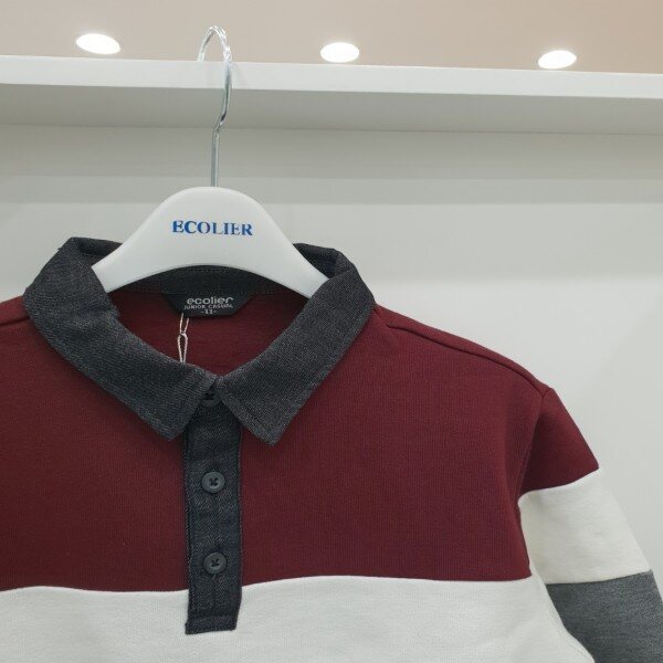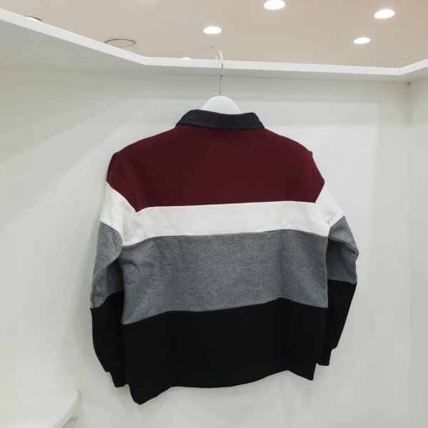 3색의 배색이 있어 청바지에도 잘 어울리는 기모 카라 티셔츠입니다