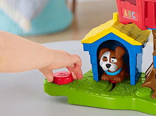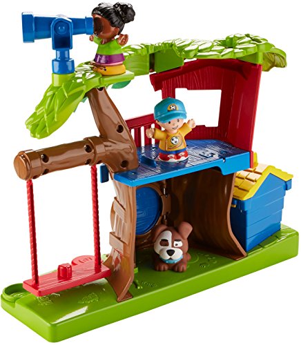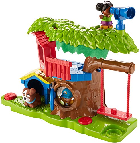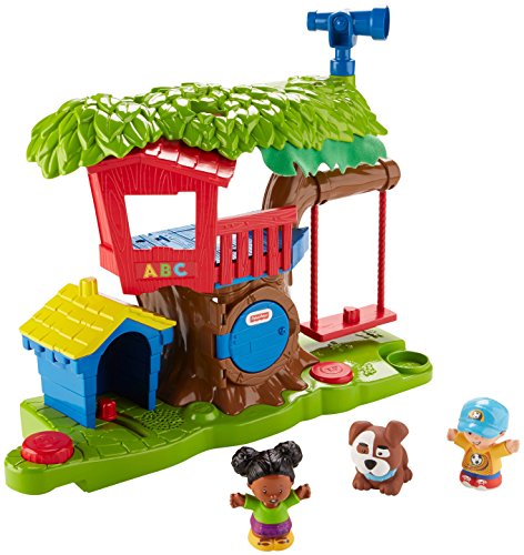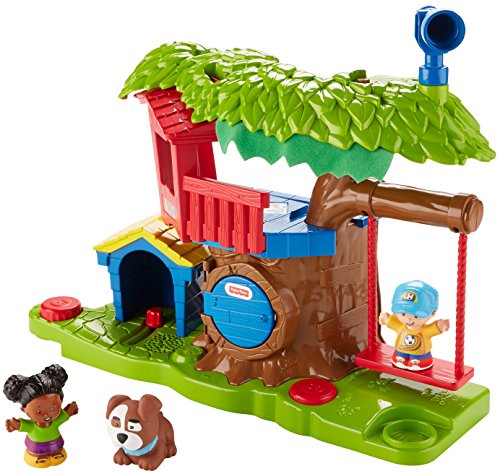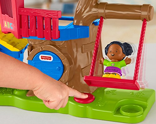 Swing into fun adventures with Tessa and Jack in the Little People Swing & Share Treehouse! Tessa and Jack are such good friends; they just love playing together. At the push of the Discovery Button, Tessa can swing back and forth, while sung songs and fun phrases teach little ones about sharing and taking turns. While Jack waits for his turn on the swing, he can play up in the treehouse, then drop through the secret trap door. Wee! But wait! Their doggy friend wants to play, too! Turn the second Discovery Button to see the dog pop out of the doghouse and say hello. Toddlers will have so much fun taking turns with Tessa and Jack and the super fun Swing & Share Treehouse! Where development comes into play Relationship Skills: As toddlers interact with the treehouse, they're introduced to taking turns, sharing, and thinking about others through sung songs and phrases. Thinking Skills: As little ones discover how to make the swing move by pushing the Discovery Button, they're learning about cause & effect!Feature
