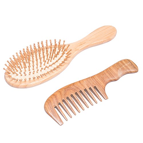 Bekith 2 Pack Green Sandalwood Hair Comb and Bamboo Hair Brush Set - Natural Detangling Comb and Pin Hair Comb with Gift Box
