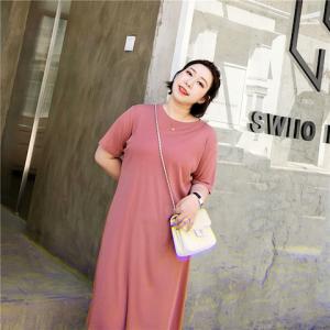 カットソーワンピース シンプル 無地 ひざ下 膝丈 大きめサイズ ゆったり 半袖 春夏 重ね着 レイヤード プチプラ