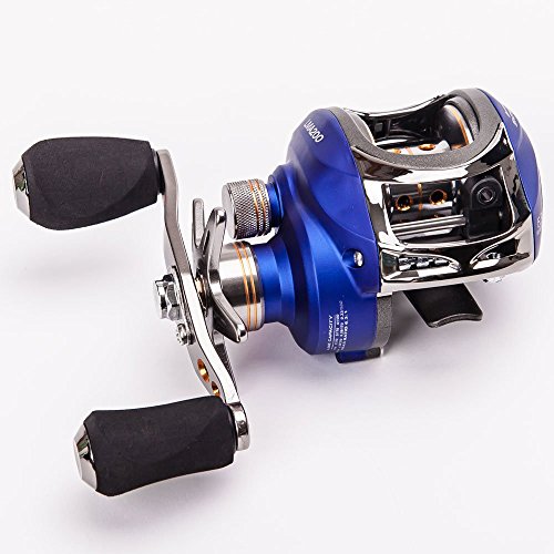 -. Feature : Starts with high density titanium alloy composite body and side covers, toughness and durability; Side cover with one Push-button Lock system for easy removal and adjustment, also avoid side cover loose or come off effectively / CNC machined aluminum spool with large line capacity; Bigger and precision machined high strength brass main gear for long life, accelerates speed and reaches bigger drag power; The ceramic insert line guide means no line damage on any line type / High speed 6.3:1 gear ratio; 10 stainless steel ball bearings plus 1 super stopper Anti Reverse roller bearing for extra smooth performance / Reliable Magnetic Braking System with a convenient external adjustable multi-level consistent cast control, allowing for smooth and accurate casts without having to remove the side cover; Smooth and reliable star drag system offers plenty of stopping power / Balanced double aluminum handles with over-sized comfortable nonslip EVA foam soft grip, provide ergonomic comfort for all-day use
