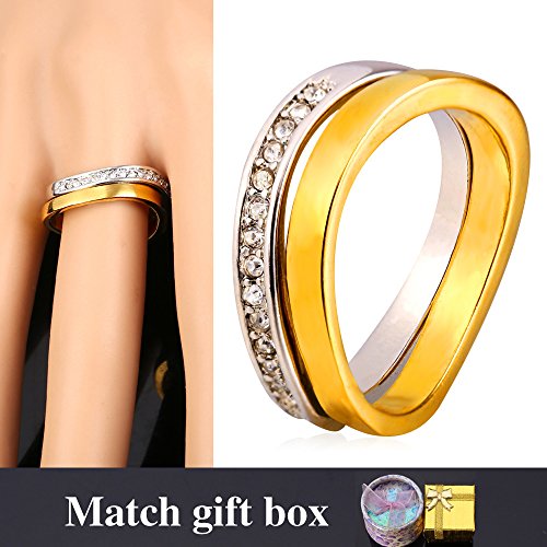 - Feature : Two-piece bridal set featuring solitaire-style engagement ring and coordinating wedding band / 2 Tone gold plated: 18k gold plated & Platinum plated / Comes With an exquisite Gift Box! / Size option: 6-10# / Imported