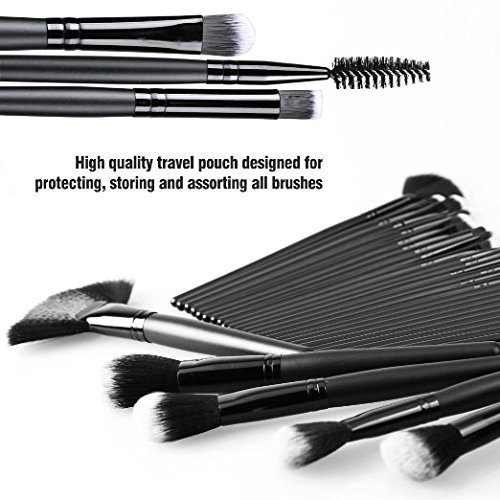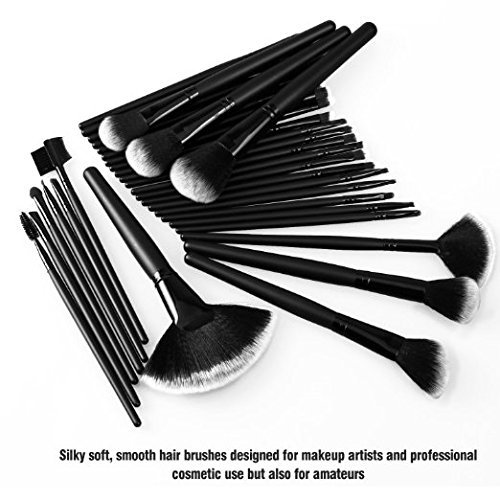 BasicWu 32pcs Professional Cosmetic Makeup Brush Set Kit with Synthetic Leather Case, (Black)