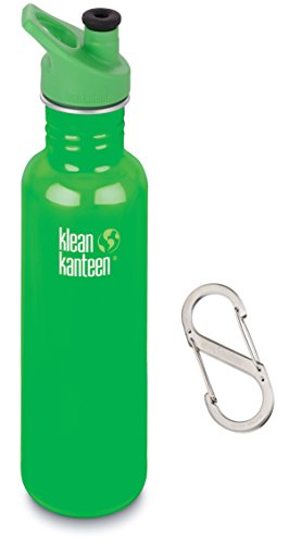 Klean Kanteen 27 oz Stainless Steel Water Bottle with Sport Cap 3.0 in Bright Green Plus #4 S-Biner Stainless Carabiner
