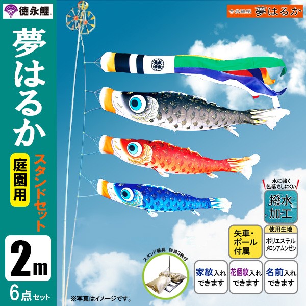 | 夢はるか鯉 庭園用大型鯉のぼり スタンド砂袋式ポール付セット | 1.5m鯉3匹 | 2m鯉3匹 | 3m鯉3匹 3m鯉4匹 3m鯉5匹 | 4m鯉3匹 4m鯉4匹 4m鯉5匹 |
