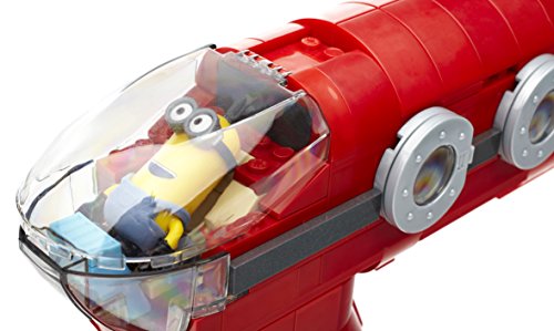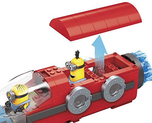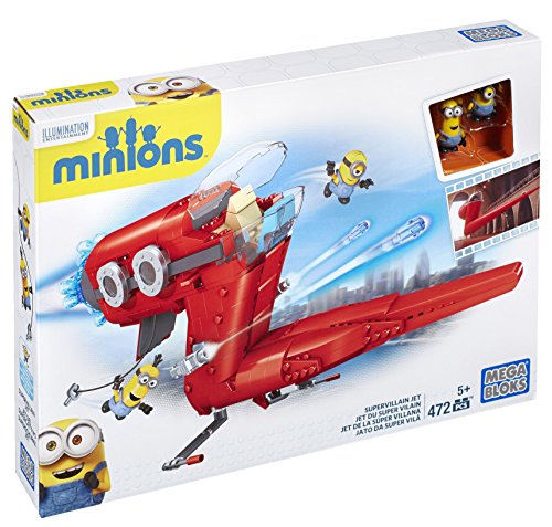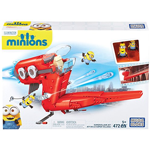 -. Feature : Mega Bloks Minions Supervillain Jet / Fully buildable jet with opening cockpit and canopy, working ejector seat, two side launchers, and a trap door for quick escapes / Two buildable Kevin and Stuart Minion character figures with interchangeable parts, including overalls, goggles, arms, feet and hair / Use the line to rappel to safety / Mix and match to customize / Collect and combine with other Mega Bloks Minions playsets to build your own Minion mischief!