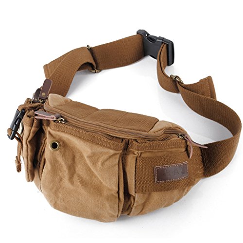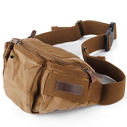 -. Title : MeCool Men's Canvas Waist Bag for Travel Outdoor Sports Fanny Pack Bum Belt Shoulder Wallet Bag