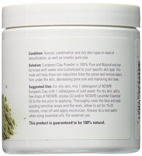 100% Pure Facial Detox/Most Skin Types Condition: Normal, combination and oily skin types in need of detoxification, as well as smaller pore size. Solution: European Clay Powder is 100% Pure and Natural and can be mixed with water and customized to your specific skin type. This mask will help draw out impurities from the pores and remove debris from under the skin, decreasing pore size and improving skin tone.Feature