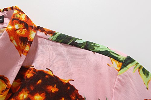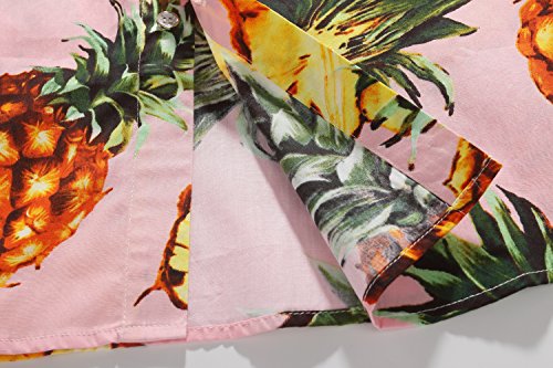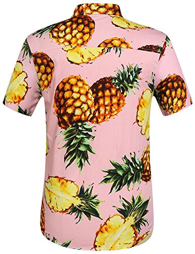 SSLR Men's Pineapple Button Down Hawaiian Style Short Sleeve Casual Shirt (Large, Pink)