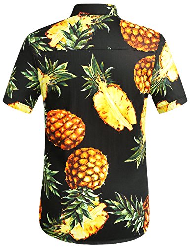 SSLR Men's Pineapple Button Down Hawaiian Short Sleeve Casual Shirt (X-Large, Black)