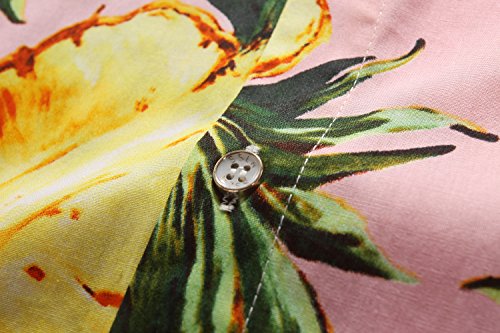 SSLR Men's Pineapple Button Down Hawaiian Style Short Sleeve Casual Shirt (Medium, Pink)