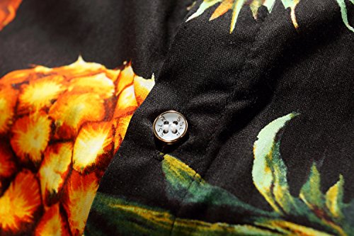 SSLR Men's Pineapple Button Down Hawaiian Short Sleeve Casual Shirt (Large, Black)