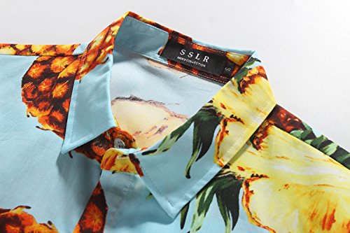 SSLR Men's Pineapple Button Down Hawaiian Style Short Sleeve Casual Shirt (Large, Blue)