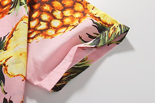 SSLR Men's Pineapple Button Down Hawaiian Style Short Sleeve Casual Shirt (XX-Large, Pink)