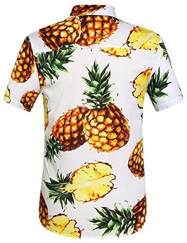 SSLR Men's Pineapple Button Down Hawaiian Style Short Sleeve Casual Shirt (Medium, White)