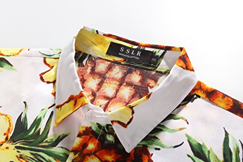 SSLR Men's Pineapple Button Down Hawaiian Style Short Sleeve Casual Shirt (X-Large, White)