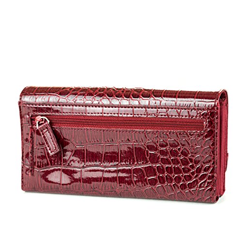Title : MUNDI File Master Crocodile Pattern Womens Wallet Clutch Organizer With Zipper Pockets - Red