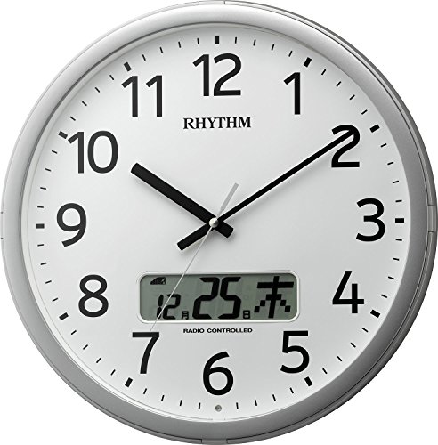 -. Title : リズム時計 RHYTHM 電波掛け時計 プログラムカレンダー01SR チャイム付き シルバー色 4FNA01SR19