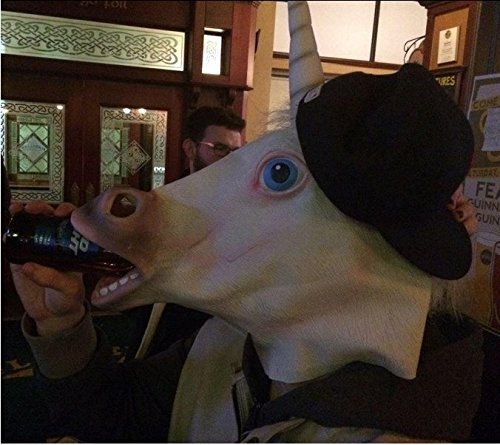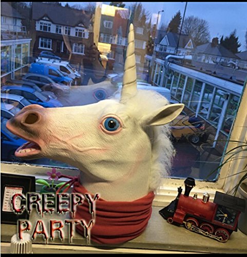 Made from high quality latex. Made exclusively for creepy party. To ensure it's the real deal please look for the creepy party label. Please note if you think this mask has a little odor, just don't worry, it's the normal odor of latex, put it under ventilated place for one day, the odor will disappear. Package included: 1 x unicorn head latex mask What is creepy party? We are a professional and experienced latex mask manufacturer. We are committed to providing our customers with a wide variety of awesome designs and high quality masks. We are now expanding and developing our business online. We just launched amazon storefronts in the us and Europe. Because it's directly from us and no middlemen involved, we are able to offer customers lower, more affordable price. Our slogan is "bring the party with creepy party PC" here are some tips to get the most enjoyment from our masks no.1 Please be aware that the vacuum packaging may cause a slight deformation issue. I say slight because it will go back to its original and intended shape in a couple of hours. Just use something to hold the mask open. We suggest a wig stand or Styrofoam mannequin which can be found and purchased cheaply. One customer says that a small waste basket turned upside down will also work. No.2 In order to make our mask look more realistic we intentionally made the slits for eyes and mouth small. However, if needed, you can improve your sight by reworking our mask at home carefully cut them larger.Feature