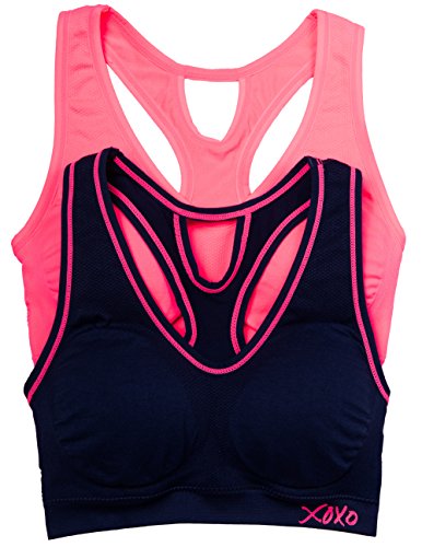 Title : XOXO Juniors 2 Pack Sports Bra with Removable Pads and Cutouts (Medium, 2PK:Navy/N.Coral )
