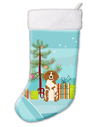 Caroline's Treasures Merry Christmas Tree Brittany Spaniel Stocking, Large, Multicolor