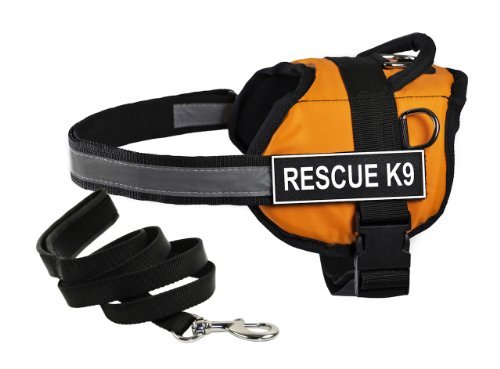(Dean Tyler)/Pet Supplies/Collars, Harnesses Leashes/DIRECT FROM USA/Dean Tyler's DT Works Orange "RESCUE K9" Harness, Small, with 6 ft Padded Puppy Leash.