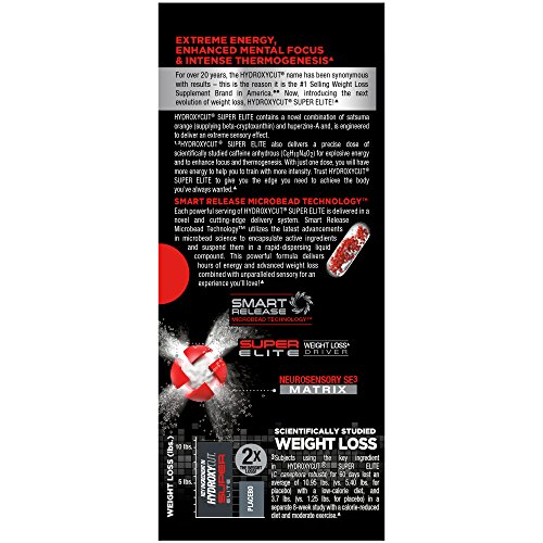 For 20 years, the Hydroxycut name has been synonymous with results. Hydroxycut Super Elite combines a precise dose of scientifically studied caffeine anhydrous, for explosive energy, focus and thermogenesis, with huperzine and rhodiola to create a one-of-a-kind sensory experience. With just one dose, you will be able to train with enhanced performance, and the powerful thermogenic effects will work to ignite your metabolic rate. Trust Hydroxycut Super Elite to give you the edge in your training to help you achieve the body you've always wanted!Feature