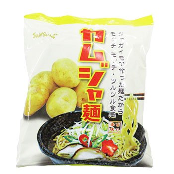 -. Feature : 内容量 :120g(めん105g)/袋×5袋 / カムジャ麺(韓国じゃがいもラーメン)です。 / めんはモチモチ! のどごしつるつる! / ピリッ!と辛い! 野菜ベースのスープと相性抜群!! / 人気の理由はじゃがいもで作ったモチモチ麺です。