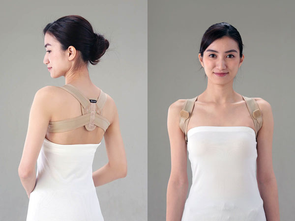 ●たすき掛けから発想したサポーター。ベルト部が肩を広げ、パッド部が支えることで美姿勢へと導きます。