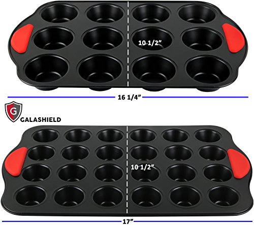 Galashield Nonstick 12 Cup Regular and 24 Mini Cup Muffin and Cupcake Pan with Silicone Grip (2 Piece Set)
